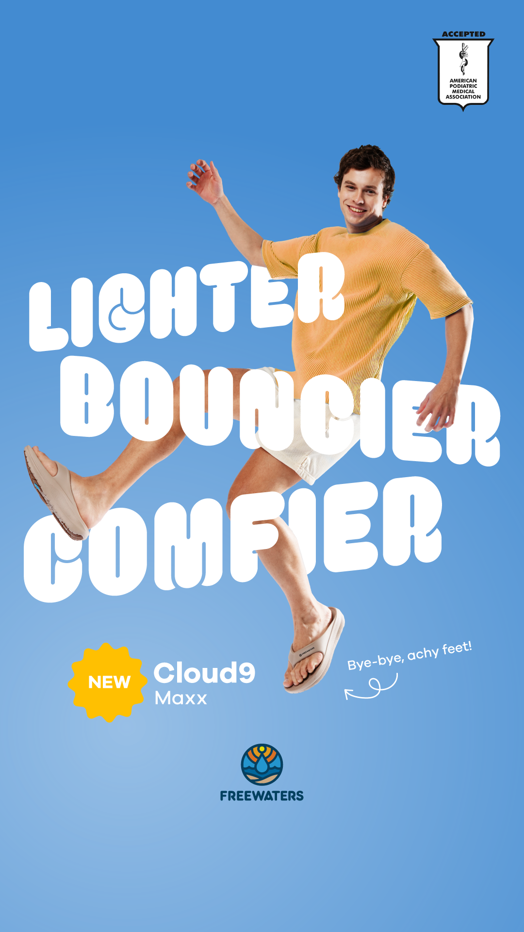 Ready to experience the difference? Check out the Cloud9 Maxx page on our website to learn more and order your pair today. Use discount code: MaxxLaunch25 for a 25% discount on your first pair of Cloud9 Maxx purchased at Freewaters.com through July 1st 2025. Your feet deserve the best—give them the Maxx.